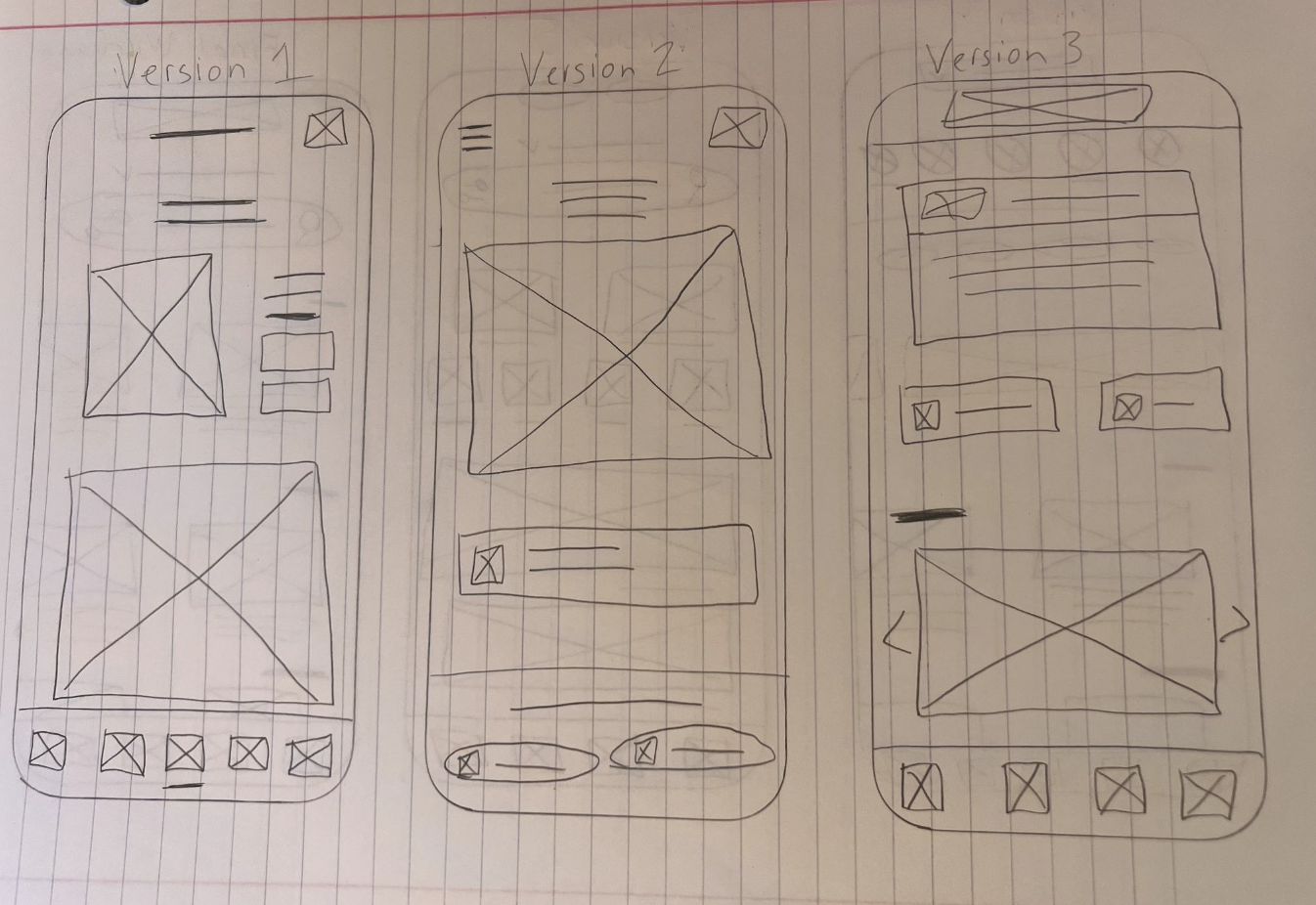 Taking the time to draft multiple iterations of each screen of the app made sure that all of the elements that made it to the digital wireframes would be best suited to address user pain points. For the home screen, I prioritized a quick and easy ordering process to help users save time.