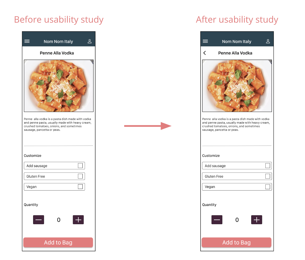 The app makes users feel like Nom Nom Italy really thinks about how to meet their needs. A key part of designing products is interacting with users early and often and even the smallest changes can have a huge impact on the product as a whole.